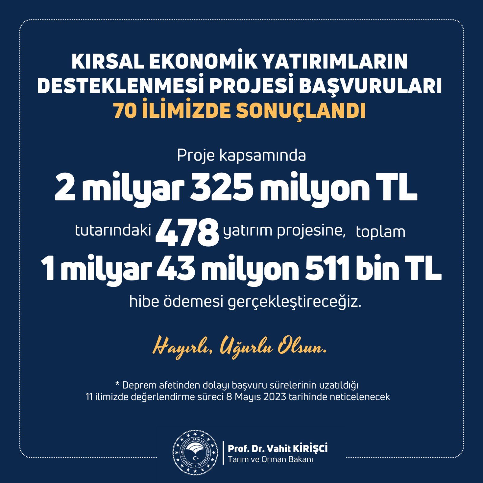 Ft_JORwWcAA3zqu 18/04/2023 tarihinde, Kırsalda 478 projeye 1 milyar liralık hibe verilecek yazısında, 1600 × 1600 çözünürlüğünde yayınlandı